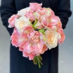 Гвоздики, Лизиантусы, Розы, Тюльпаны