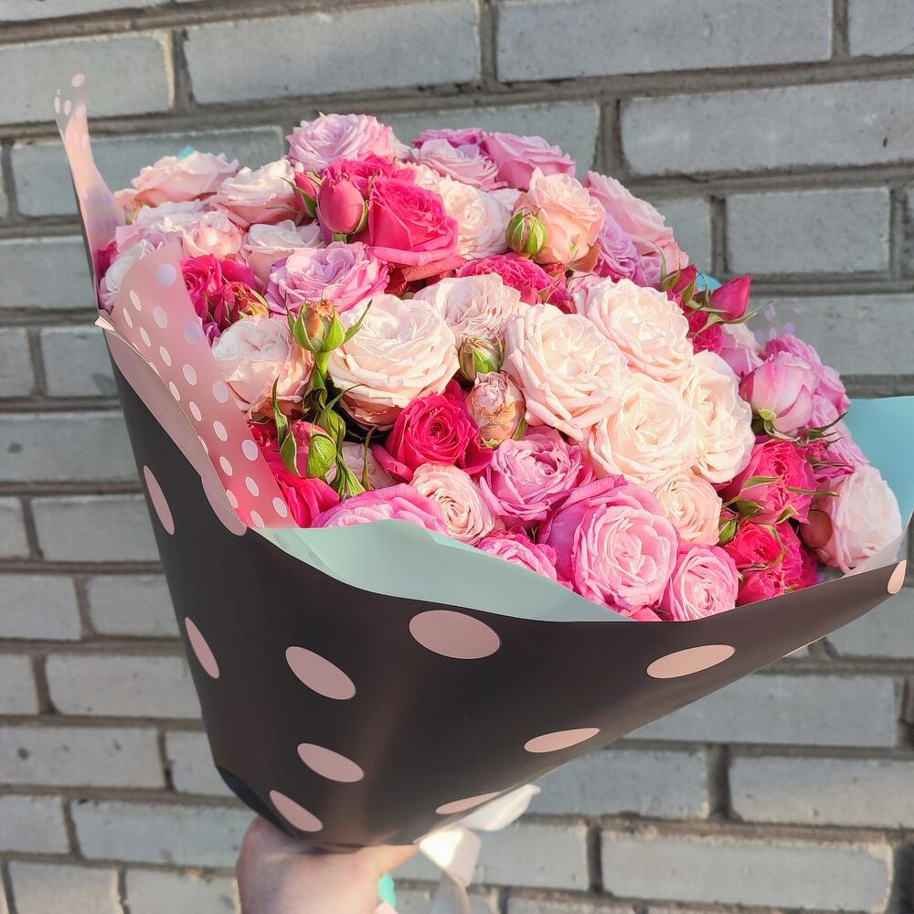 Гвоздики, Кустовые розы, Пионовидные розы, Розы