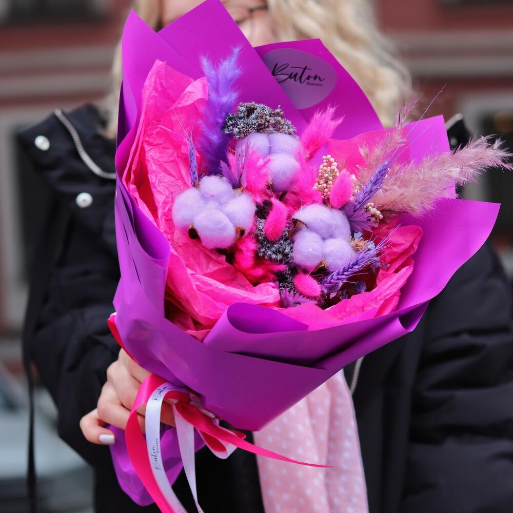 Авторский интерьерный букет из сухоцветов в фиолетовой гамме