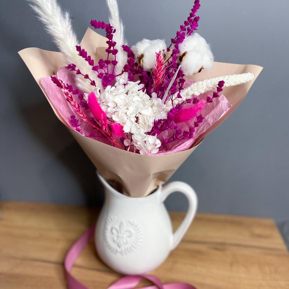 Букет из сухоцветов в розовых тонах с хлопком