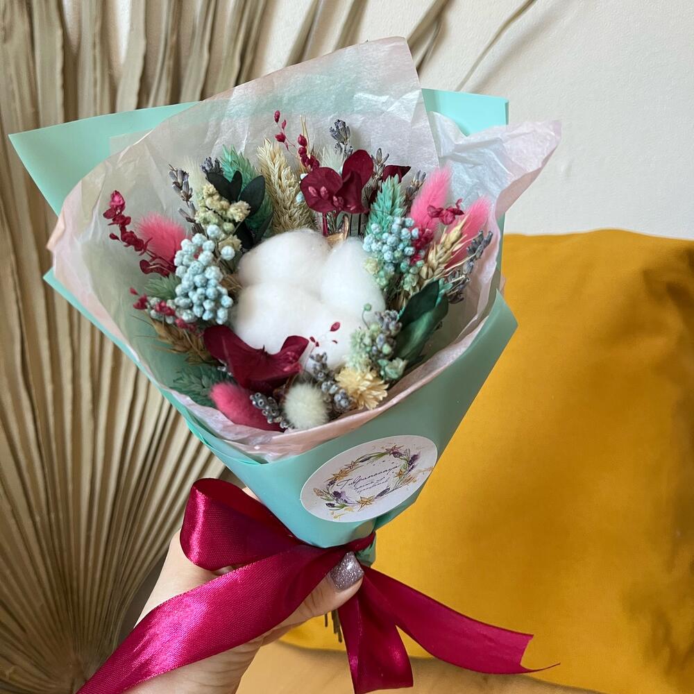 Лаванда – 20 шт.Хлопок – 1 шт.Лагурус – 10 шт.Фаларис – 7 шт.Эвкалипт стабилизированный – 3 шт.