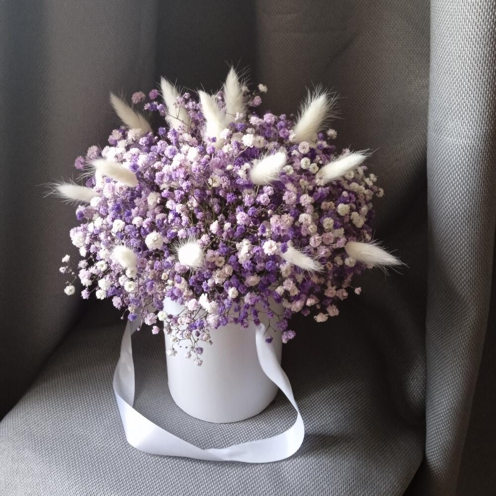 Гипсофила розовая с лавандой в шляпной коробке