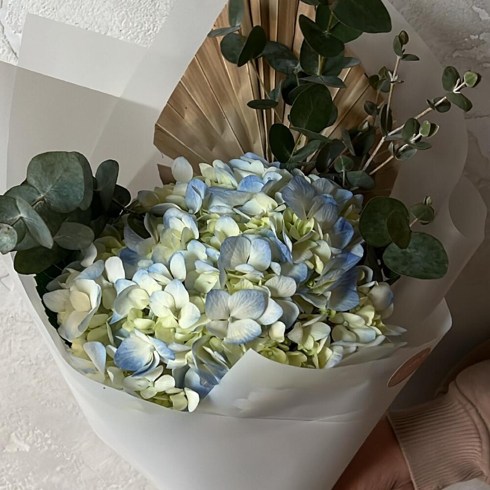 Гортензия – 1 шт.Сухоцвет – 1 шт.Эвкалипт – 1 шт.Упаковка дизайнерская – 1 шт.
