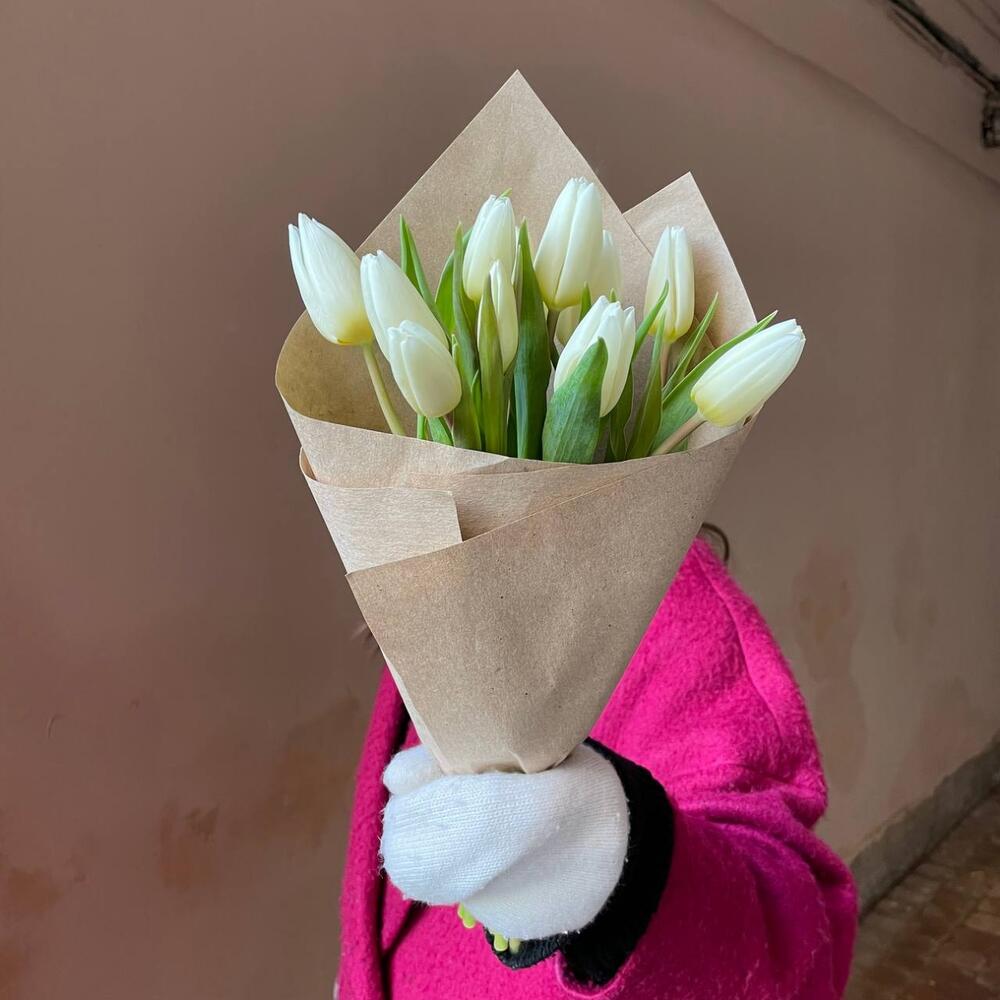 Крафтовая упаковка – 1 шт.Белый тюльпан – 11 шт.