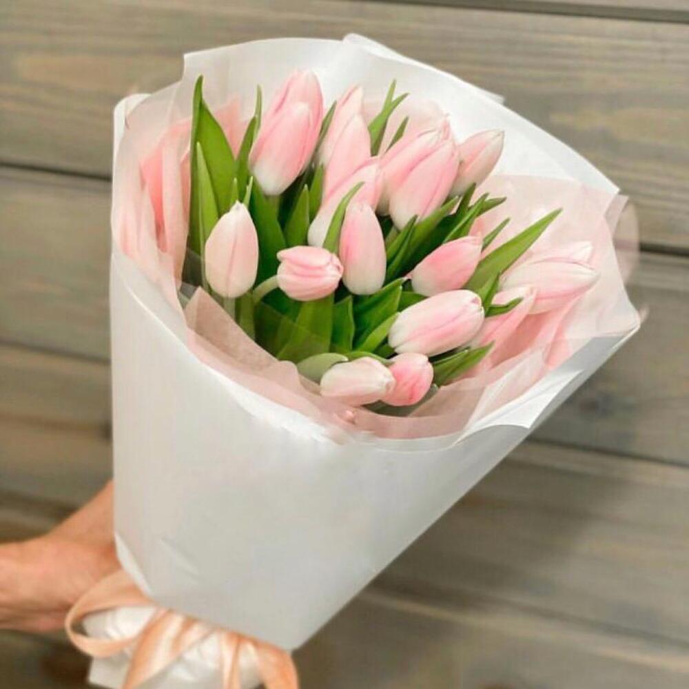 Тюльпан – 15 шт.Лента атласная – 1 шт.Тишью – 2 шт.Упаковка дизайнерская – 2 шт.