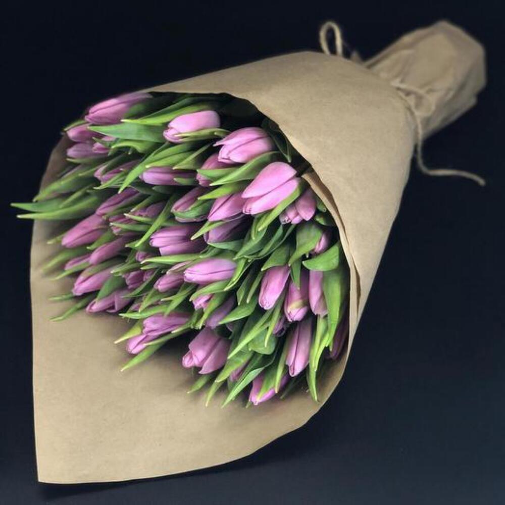 Сиреневые тюльпаны в крафте , очень стильный букет из стойкого сорта тюльпанов , будет долго радовать получателя ) Отличный вариант для подарка на 8 марта . Ваша девушка будет счастлива получить модный букет из тюльпанов . )